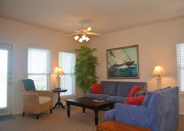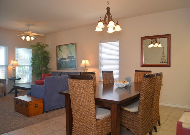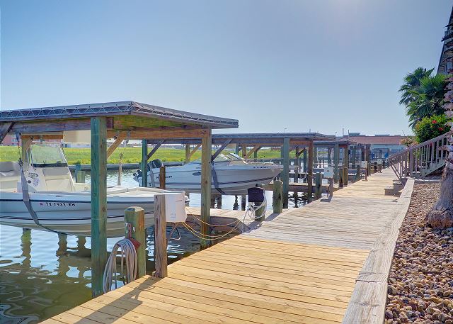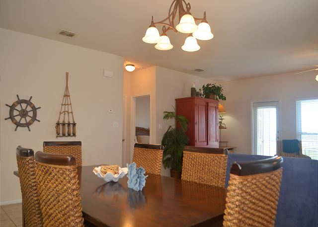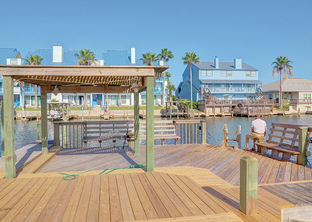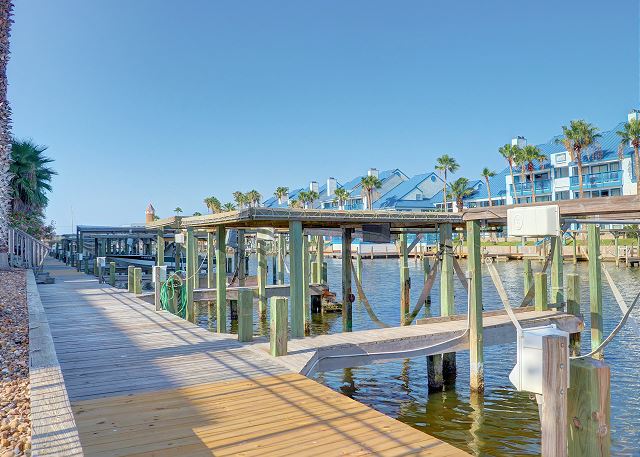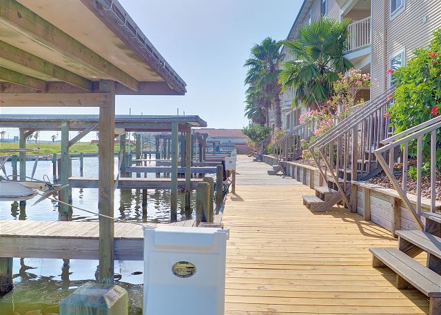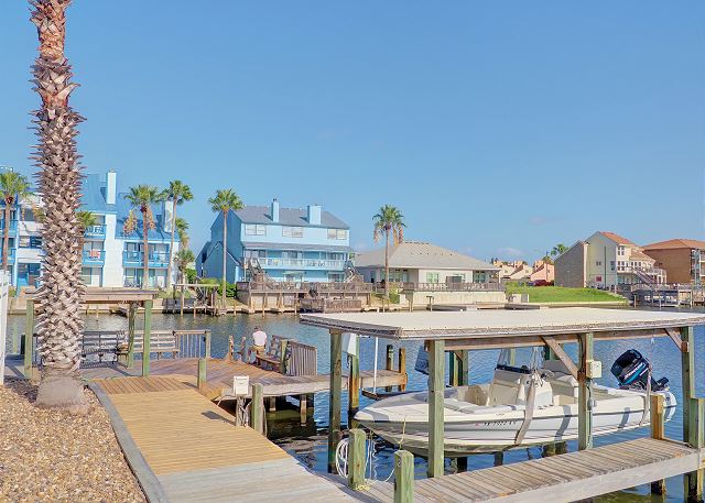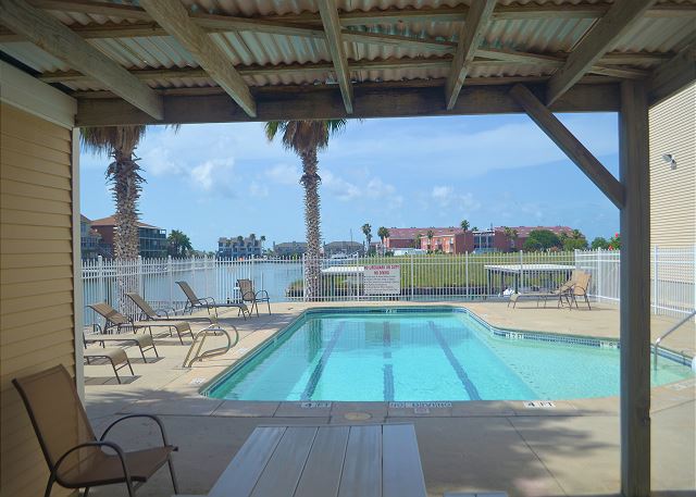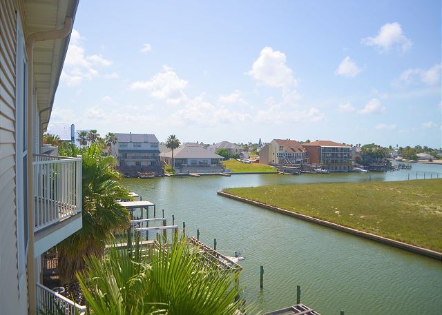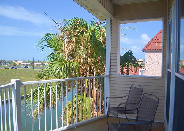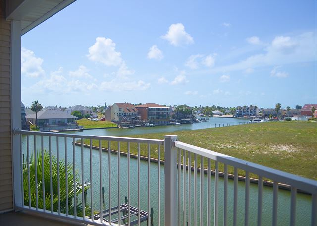 The best on the coast! Set your sights on Compass Condos, an upscale complex one block from Schlitterbahn. Each unit offers a private boat slip, fishing pier, balcony view of the water, private parking, elevator, pool and gazebo by the canal, close to the beach, and handicap accessible. This top floor corner unit provides a quiet place to unwind and enjoy your vacation. The balcony is protected from the afternoon sun while offering great multi-directional views that overlook its private boat slip. The living room is decorated with a stylish yet sophisticated nautical theme and has a large TV with DVD/VCR. Master has a king bed with private bath and large walk-in closet. Master bedroom also has a 26" color TV with DVD/VCR. Second and third bedrooms both have twin beds. Living room has a sofa sleeper to accommodate 8 guests. Cable, updated appliances, washer and dryer inside unit. (Absolutely no smoking and no pets). Also see Compass A-1. Enjoy some of the local attractions during your stay. You'll be minutes away from Schlitterbahn Water Park, Funtrackers with go-carts and bumper boats, Treasure Island for mini golf, and horseback riding at Horses on the Beach. Or head into town and go see some of the places that make Corpus Christi beautiful. Enjoy the famous Texas State Aquarium, South Texas Botanical Gardens, The USS Lexington, or Hurricane Alley Water Park. Have some fun or do some shopping at Get Air, Bowlero, and La Palmera Mall. There is so much to do we can't mention it all! Corporate rentals and Winter Texans welcome!